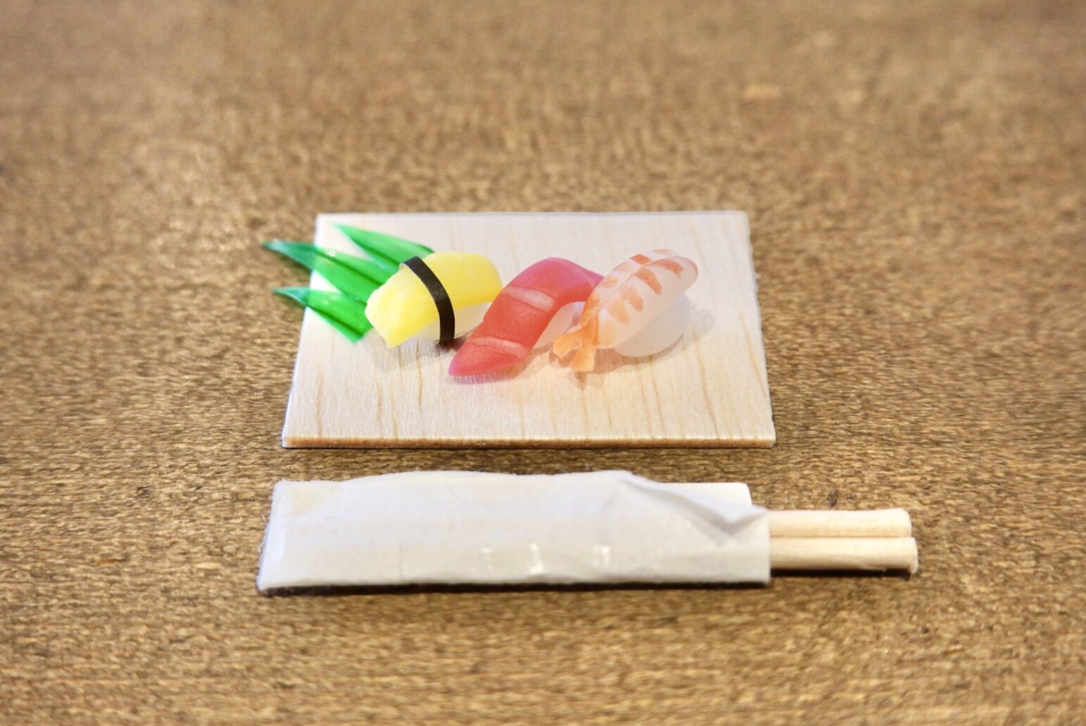 2回に分けて、樹脂ねんどを使った本格的なミニチュア寿司に挑戦します。難易度が高いため、小さなお子様は保護者の方の補助が必要となります。